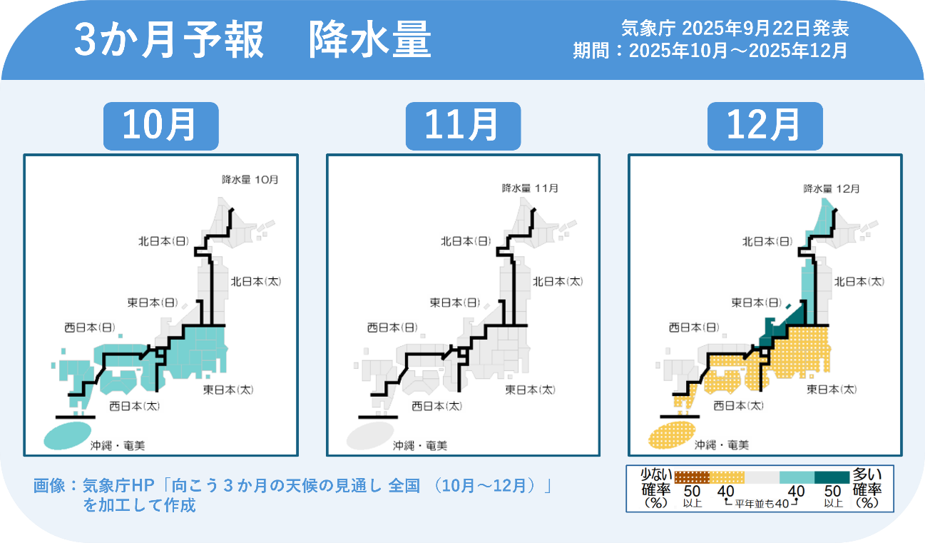 9月22日(月)、気象庁は10月から12月までの3か月予報を発表しました。
