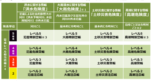 ・各警戒レベルに合わせて特別警報や注意報などの名称を統一します