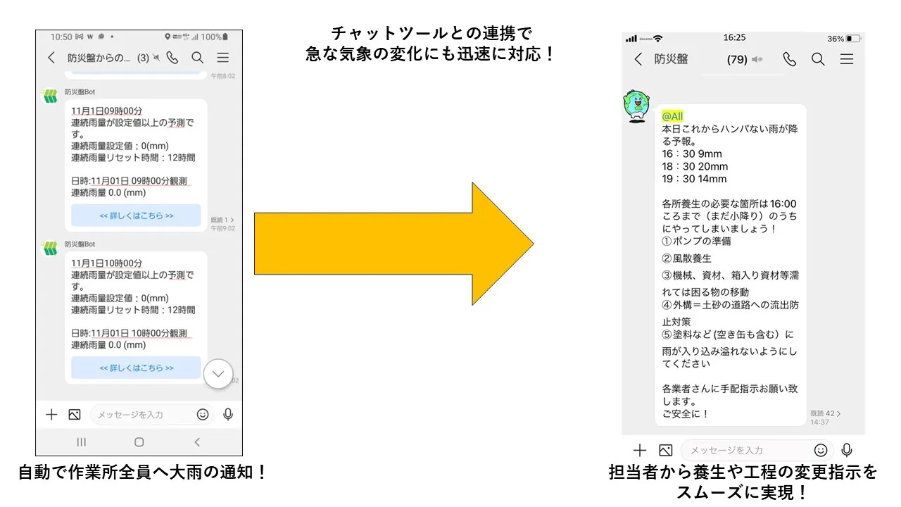 direct LINE WORKSなどのチャットツールと連携し、協力会社含め瞬時に共有することで