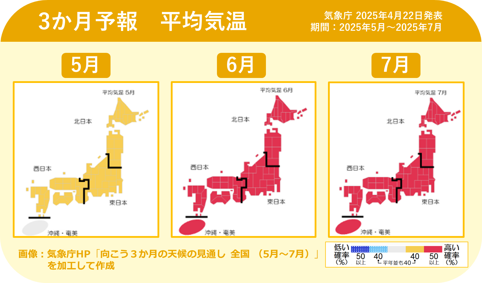 4月22日(火)、気象庁は5月から7月までの3か月予報を発表しました。